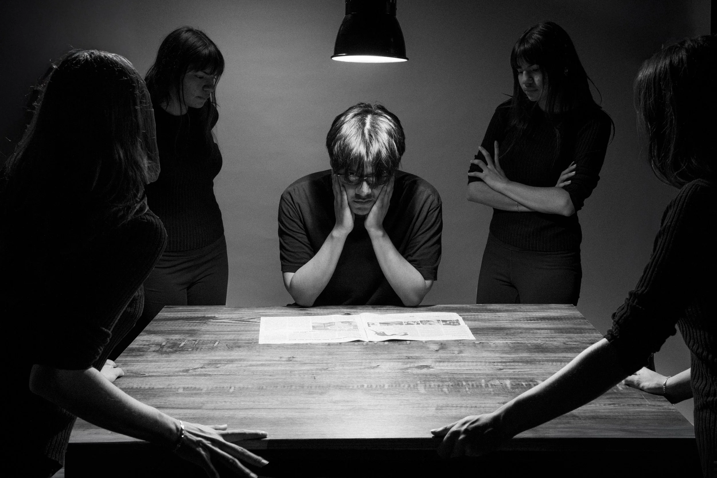 This project explores intimacy, sadness, awkwardness, and most importantly, love in distress. Using the studio and a variety of hot lights, I articulated these emotions through the images. Not only this, but inspiration from both talented photographers Carrie Mae Weems and Pixy Liao, I utilized some techniques from their photographs to replicate into my own project, giving more inspiration to my own ideas and my own posing throughout the shoot. A heavy usage of photoshop provided the opportunity to present seamless clones in the images, giving a deeper meaning to every photo.
